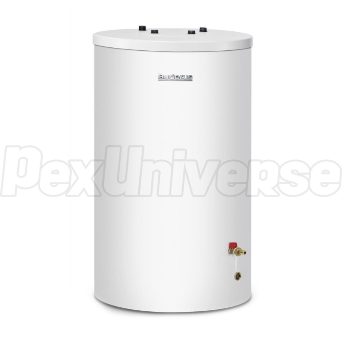 Buderus S32 is a vertical, single-coil indirect hot water tank with top connections and 30-gallon DHW capacity. It features Thermoglaze ceramic coating (on both tank and coil) and a magnesium anode rod for superior corrosion protection.