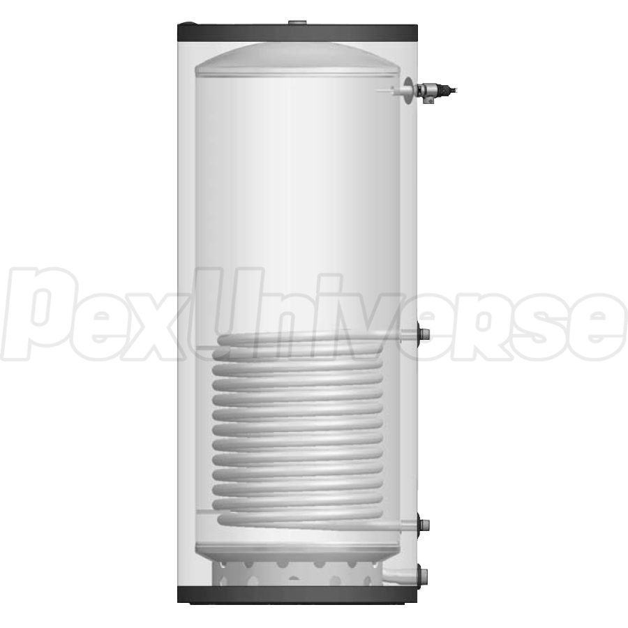 Buderus SST450-119 model is a vertical, single coil indirect hot water tank with 113.4-gallon capacity. It features 316L stainless steel tank and heat exchanger coil for superior corrosion protection.