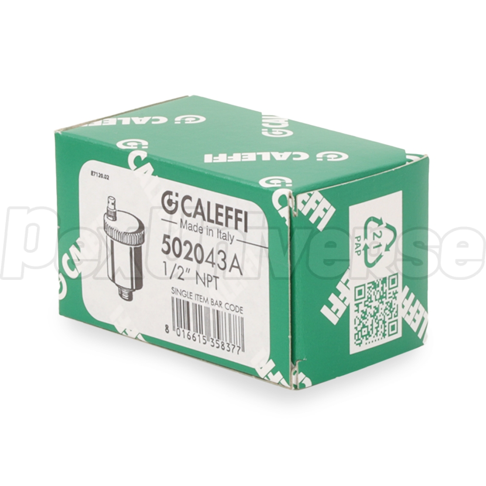 Caleffi MINICAL series float type automatic air vent with hygroscopic cap and 1/2" male NPT connection. Unlike standard air vent caps, hygroscopic safety cap prevents water spills in case the vent malfunctions. Simple, time tested, easy to use & install, it's compatible with nearly any hot water heating system (baseboards, radiators, radiant floor heat, fan coils, etc.). Removes trapped air from hydronic systems, increasing efficiency and reducing corrosion of cast iron elements (boiler heat exchanger, radiators, circulators, air scoops, etc.). Field serviceable design allows disassembly and cleaning or basic repairs. Made in Italy.