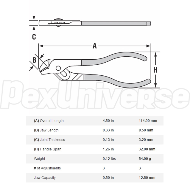 424 Channellock 4.5" Straight Jaw Tongue and Groove Plier, 0.5" Jaw Capacity