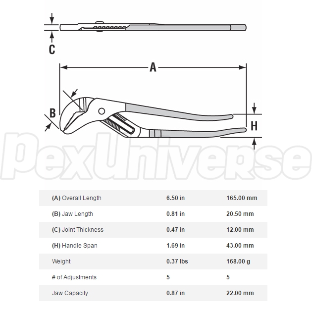 426 Channellock 6.5" Straight Jaw Tongue and Groove Plier, 7/8" Jaw Capacity