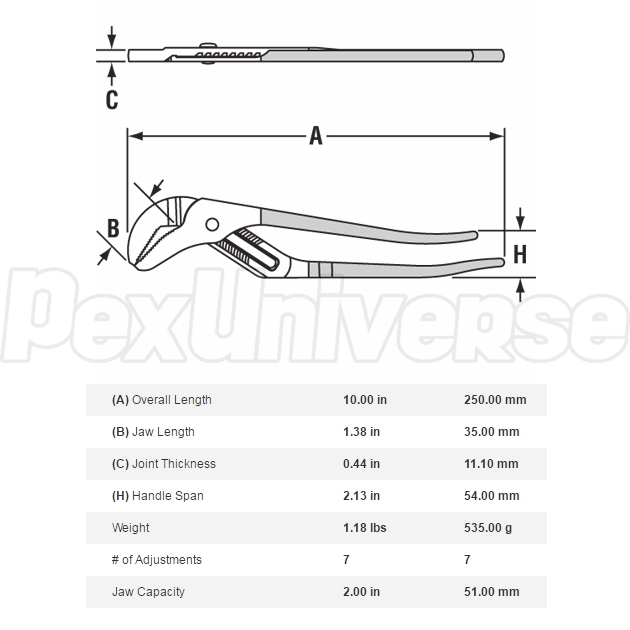 430 Channellock 10" Straight Jaw Tongue and Groove Plier, 2" Jaw Capacity