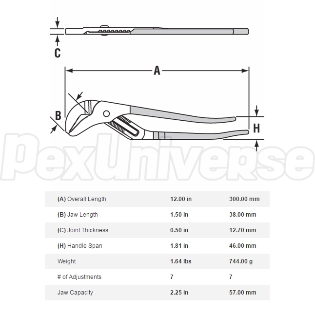 440 Channellock 12" Straight Jaw Tongue and Groove Plier, 2.25" Jaw Capacity