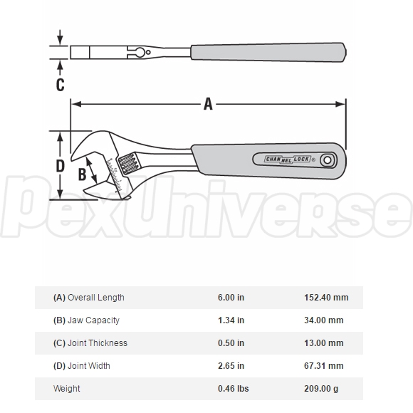 6WCB Channellock 6" WideAzz Adjustable Wrench