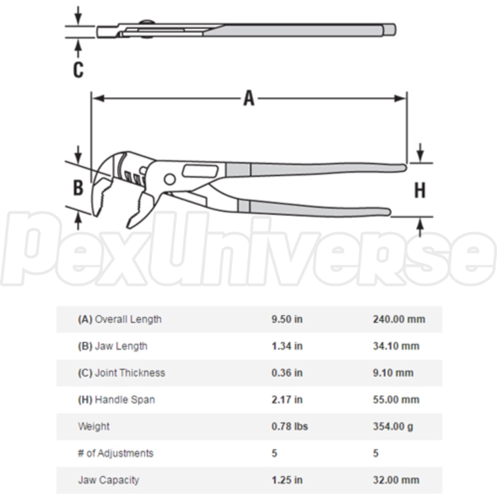 GL10 Channellock Griplock 9.5" Tongue and Groove Plier, 1.25" Jaw Capacity
