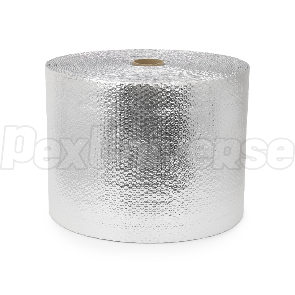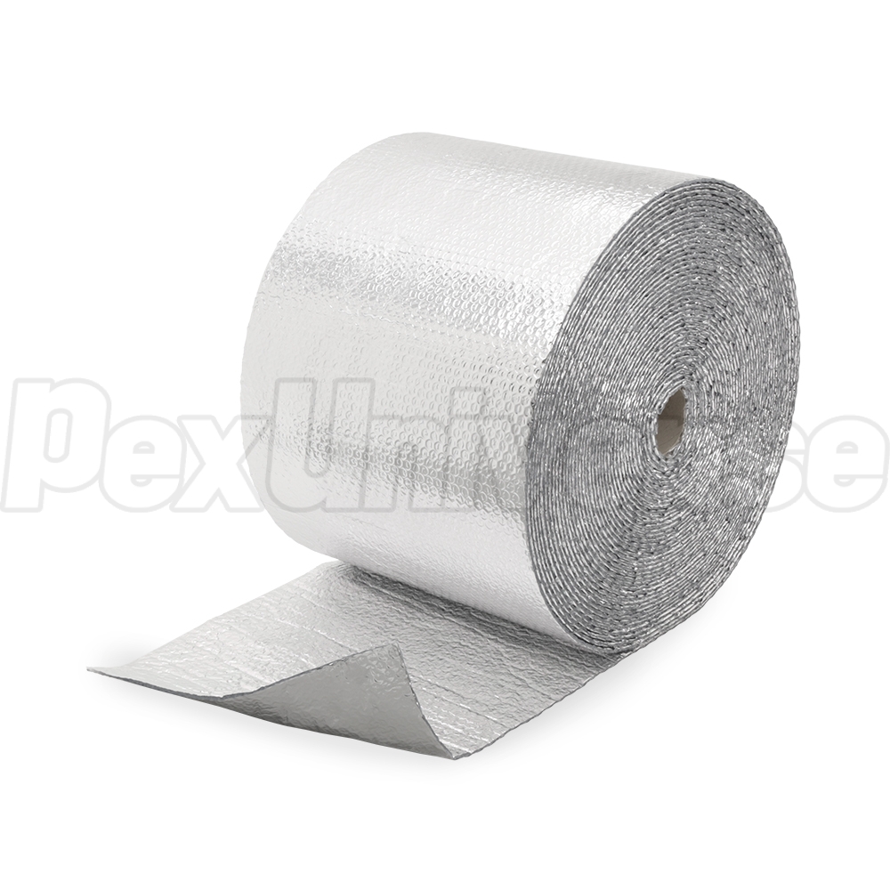 16" wide x 125ft long (166 sqft total) roll or reflective double bubble insulation with staple tabs (for easier stapling to joists). Designed for frame homes with 16" OC (on-center) joist spacing (most common in the US). Ideal for PEX radiant heat projects where PEX is stapled to the subfloor (with or without heat transfer plates) between the joists. How it works: in radiant floor heat projects where PEX is stapled to the subfloor (between the floor joists) and heats the floor above, it transfers heat to the flooring above via all (3) methods - conduction (from direct contact with surface), radiation (infrared heat waves) and convection (air circulation). When uninsulated, portion of the heat emitted from the PEX pipes is lost, primarily through convection and radiaton. When joist bay is insulated, convection is maintained within the isolated air space (tanks to the air gap created by double bubble layer) and radiant heat is reflected back up towards the floor (thanks to the reflective foil). This significantly increases system efficiency and helps to distribute heat more evenly across the flooring surface. This insulation offers excellent R-value, provides a water vapor barrier and is overall a much healthier alternative to fiberglass insulation. Class A/1 fire-rated.