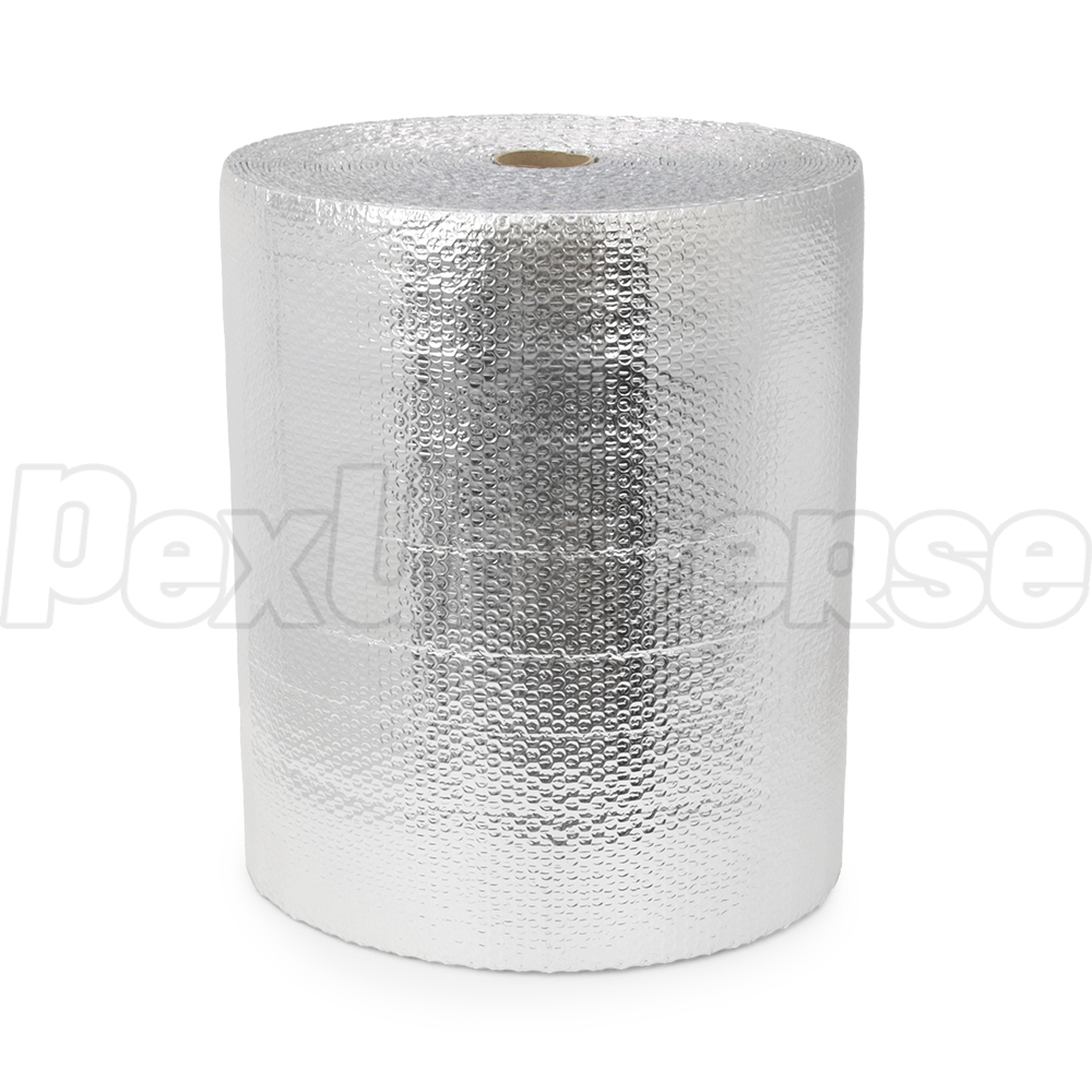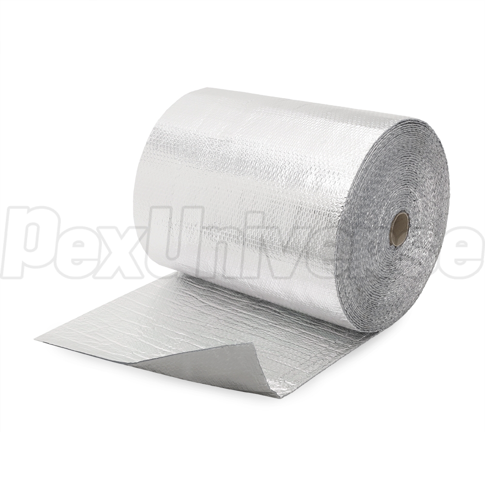 24" wide x 125ft long (250 sqft total) roll or reflective double bubble insulation with staple tabs (for easier stapling to joists). Designed for frame homes with 24" OC (on-center) joist spacing. Ideal for PEX radiant heat projects where PEX is stapled to the subfloor (with or without heat transfer plates) between the joists. How it works: in radiant floor heat projects where PEX is stapled to the subfloor (between the floor joists) and heats the floor above, it transfers heat to the flooring above via all (3) methods - conduction (from direct contact with surface), radiation (infrared heat waves) and convection (air circulation). When uninsulated, portion of the heat emitted from the PEX pipes is lost, primarily through convection and radiaton. When joist bay is insulated, convection is maintained within the isolated air space (tanks to the air gap created by double bubble layer) and radiant heat is reflected back up towards the floor (thanks to the reflective foil). This significantly increases system efficiency and helps to distribute heat more evenly across the flooring surface. This insulation offers excellent R-value, provides a water vapor barrier and is overall a much healthier alternative to fiberglass insulation. Class A/1 fire-rated.