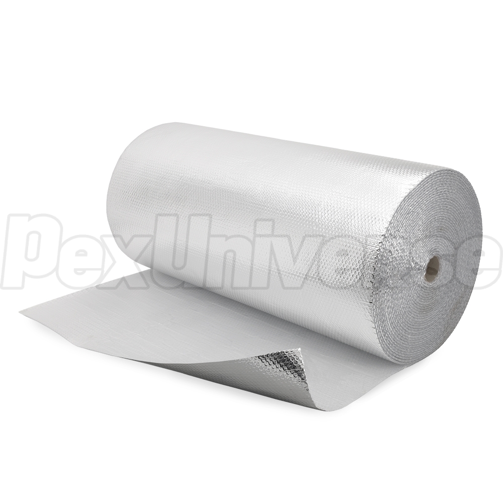 48" wide x 125ft long (500 sqft total) multi-layer Foil/Double Bubble/Poly for under-slab concrete applications. This insulation is designed for installation below the concrete pad to provide a basic thermal break (R-1.1 value), vapor & radon barrier and a decoupling membrane. This insulation is resistant to mold, fungi and insects and is sufficiently durable to withstand punctures, tears and light foor traffic. Best suited for projects where traditional (such as EPS foam) slab insulation is optional and or unfeasible. When multiple rolls are installed, we suggest using a 3" poly tape (polyester tape w/ acrylic adhesive backing) to seal the seams - be sure the top layer is clean to ensure poper adhesion. As with other sheet building materials, the best practice is to stagger the joints/seams. Note:Clear poly layer must be facing up.