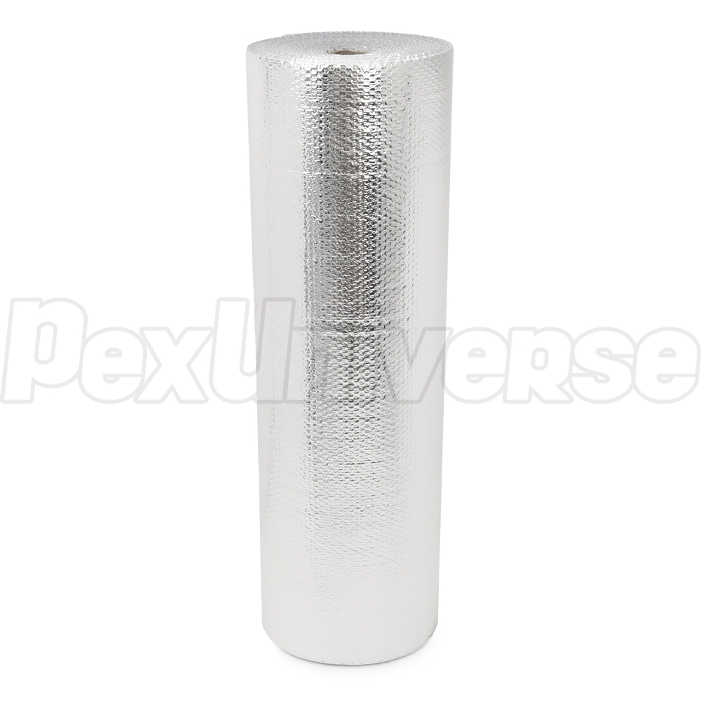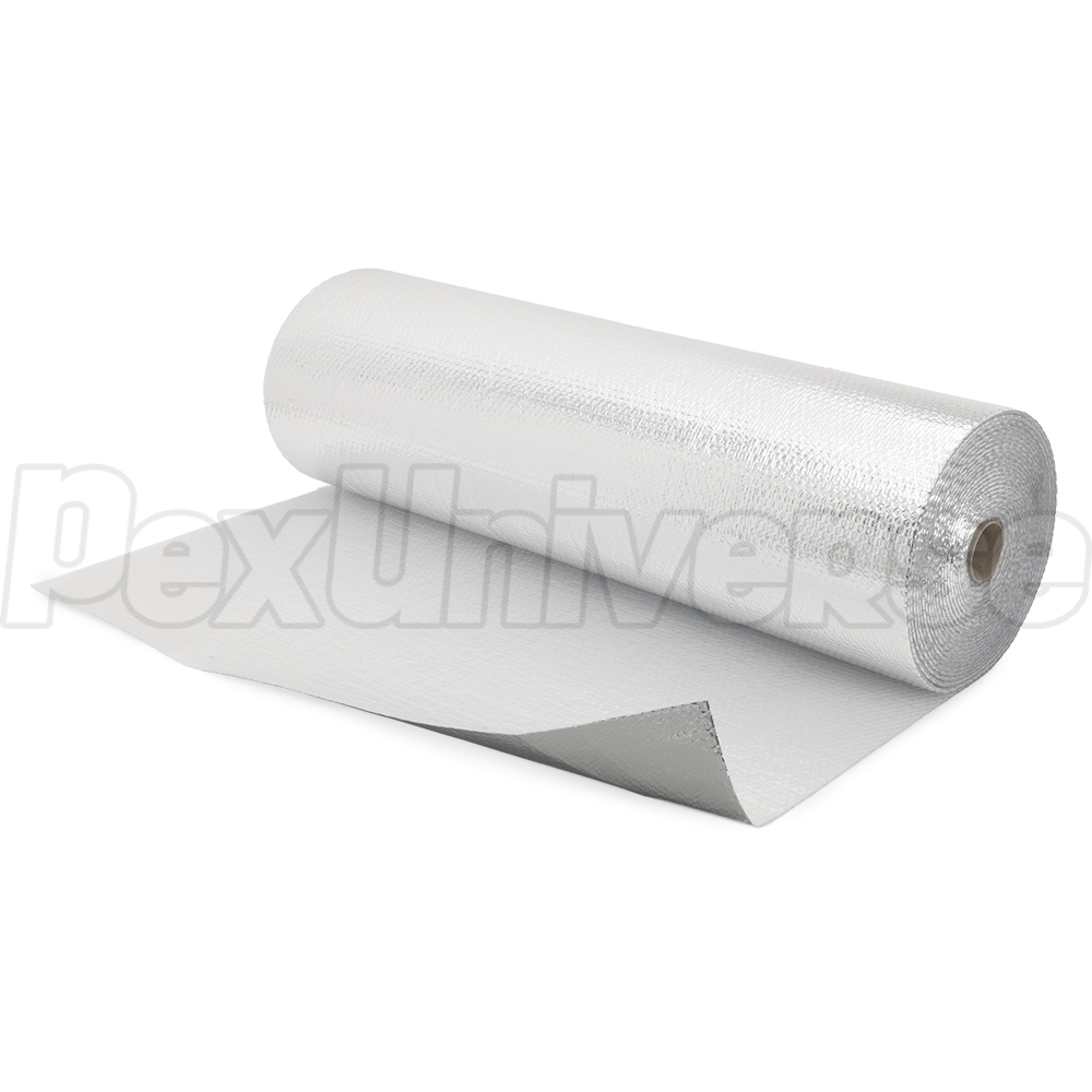 48" wide x 50ft long (200 sqft total) multi-layer Foil/Double Bubble/Poly for under-slab concrete applications. This insulation is designed for installation below the concrete pad to provide a basic thermal break (R-1.1 value), vapor & radon barrier and a decoupling membrane. This insulation is resistant to mold, fungi and insects and is sufficiently durable to withstand punctures, tears and light foor traffic. Best suited for projects where traditional (such as EPS foam) slab insulation is optional and or unfeasible. When multiple rolls are installed, we suggest using a 3" poly tape (polyester tape w/ acrylic adhesive backing) to seal the seams - be sure the top layer is clean to ensure poper adhesion. As with other sheet building materials, the best practice is to stagger the joints/seams. Note:Clear poly layer must be facing up.
