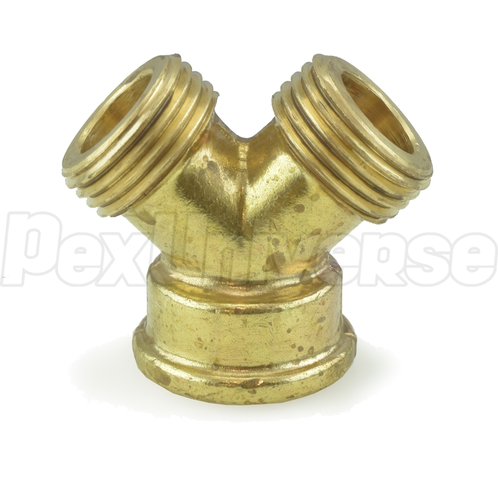 Garden hose wye (splitter or simply "Y") is used to connect two (2) garden hoses to a single outlet garden faucet, hose bib or sillcock. Rubber washer included.