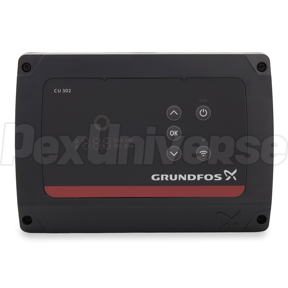 Constant pressure control for SQE series deep well submersible pumps with Bluetooth interface & Grundfos GO app connectivity (MI 301 not required) - enables constant pressure selection/functionality, displays settings and other data. This module turns the SQE pump On or Off and regulates speed (to match selected pressure setting) by means of the transducer pressure sensor (sold separately, not included with this model), which has 1/2" NPT connection and is installed into a tee fitting connected in-line to the well water pipe. Compatible with all SQE pumps - both 115V and 230V (200-240V).