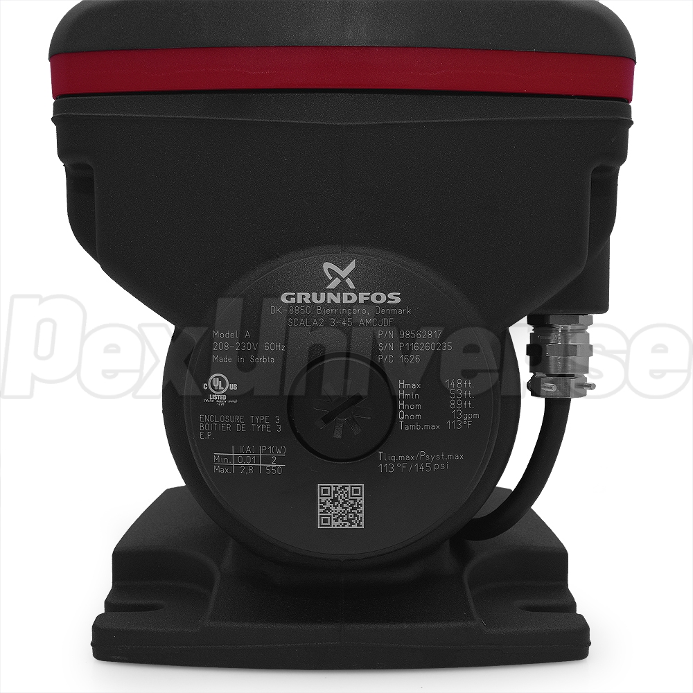 Grundfos SCALA2 is a fully integrated water presure booster pump designed to deliver perfect water pressure. It features pump, tank, motor, sensor, drive and non-return valve all in one compact unit that installs quickly and easily. With its water-cooled motor it offers one of the lowest noise levels in its class. Intelligent pump control adjusts performance to any demand.