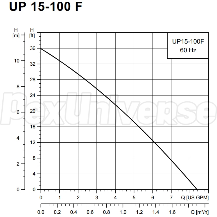 Grundfos UP15-100F model (Grundfos# 59896300) is a 1/25HP, high-head Cast Iron Circulator Pump specifically designed for applications with high pressure drop. Suitable for use with closed loop heating applications, including radiant heating, baseboards, fan coils and many others.