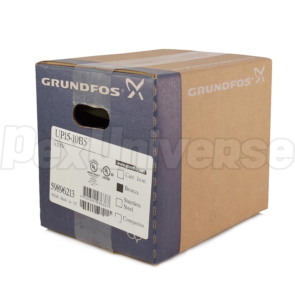 Grundfos UP15-10B5 (Grundfos SKU# 59896213) is a 1/25HP bronze circulator pump with 1/2" Sweat inlet/outlet connections and is typically used in open loop heating and hot water recirculation applications, such as radiant, solar, storage tanks, as well as chilled water cooling and many others. Bronze housing of the UP15-10B5 model protects the pump from corrosion and sweat connections allow for easier and faster installation and eliminate the need to purchase and install pump flanges.