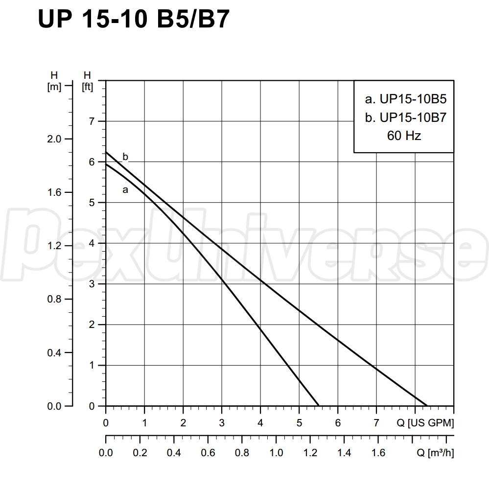 Grundfos UP15-10B7 is a 1/25HP Bronze Circulator Pump (59896226) with 3/4" Sweat inlet/outlet connections. Sweat connections of the UP15-10B7 model simplify the installation process and eliminate the need for purchase and installation of pump flanges - simply sweat the pump into the 3/4" copper line. Bronze circulation housing protects the pump from corrosion and allows for use it in different applications, such as hot water recirculation, radiant heating, hydronic heating, hot water storage tanks, etc.