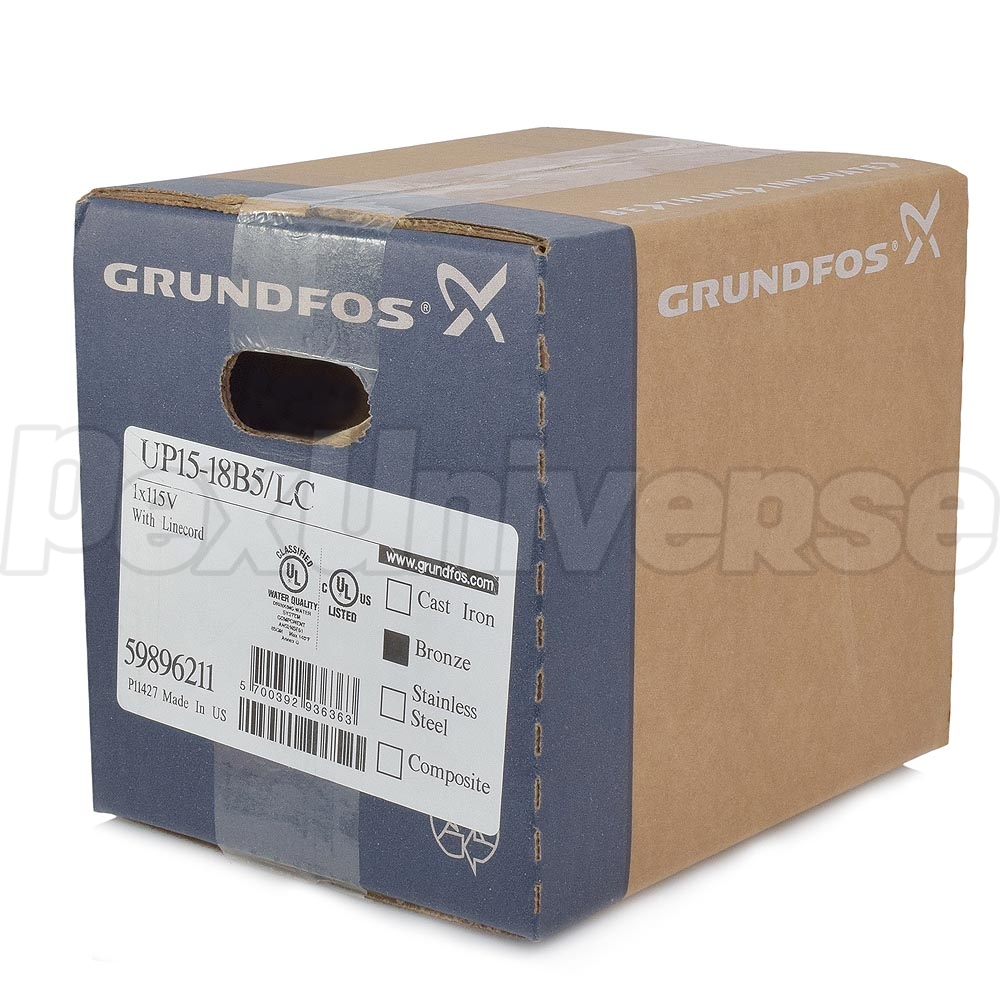 Grundfos UP15-18B5/LC (Grundfos 59896211) is a 1/25HP, single-speed, Bronze Circulator Pump with 1/2" Sweat inlet/outlet connections and features a 6-foot long Line Cord, which eliminates unnecessary wiring and allows to plug the pump right into an electrical outlet. Bronze construction of the Grundfos UP15-18B5/LC model protects the pump from corrosion and allows to use it in a variety of closed and open loop applications, including radiant, solar, storage tanks and many others.