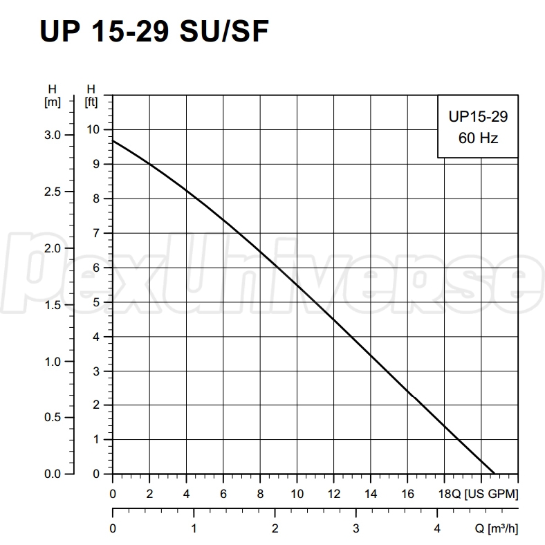 Grundfos UP15-29SUC/TLC is a 1/8HP Stainless steel Circulator Pump (Gundfos SKU# 99452462) with a removable Integral Check Valve, 1-1/4" (GU125) union connections, Timer and 6-foot Power Cord. Grundfos UP15-29SUC/TLC is perfectly suited for recirculation applications thanks to the built-in timer and unnecessary wiring is eliminated by plugging the circulator directly into the electrical outlet. Stainless steel construction of the UP15-29SUC/TLC model allows to use it in applications such as radiant, solar, hydronic, chilled water cooling, domestic hot water recirculation, and many others.