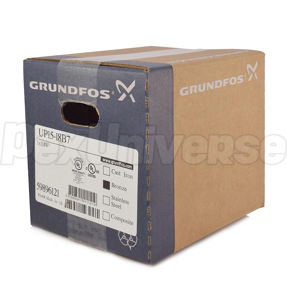 The Grundfos UP15-42B7 (Grundfos# 59896146) is a 1/25HP Bronze Circulator Pump with 3/4" Sweat inlet/outlet connections.
