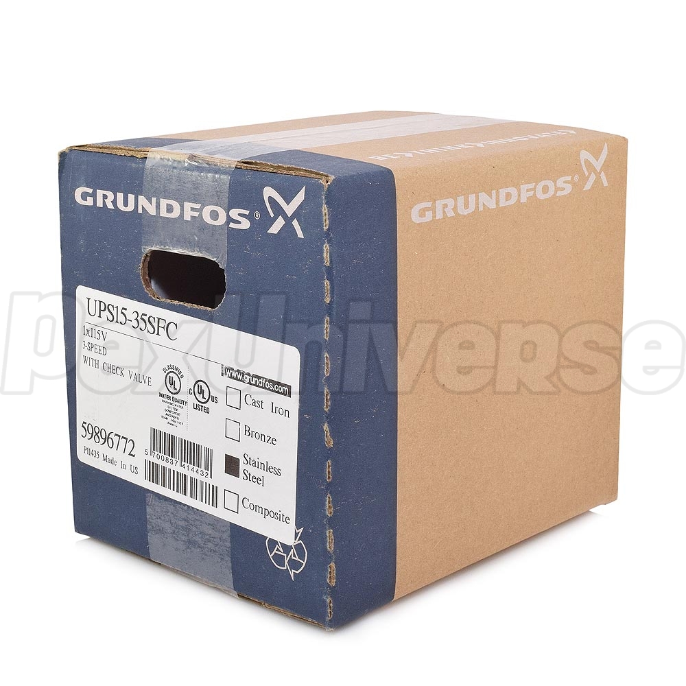 Grundfos UPS15-35SFC (59896772) is a 1/6HP, 3-Speed Circulator Pump with stainless steel housing, suitable for a wide range of open loop and closed loop applications, including radiant heating, hydronic heating, solar, hot water recirculation, chilled water cooling and many others. 3 speeds of the Grundfos UPS15-35SFC model allow to adjust pump's parameters to match system requirements and achieve optimal performance.