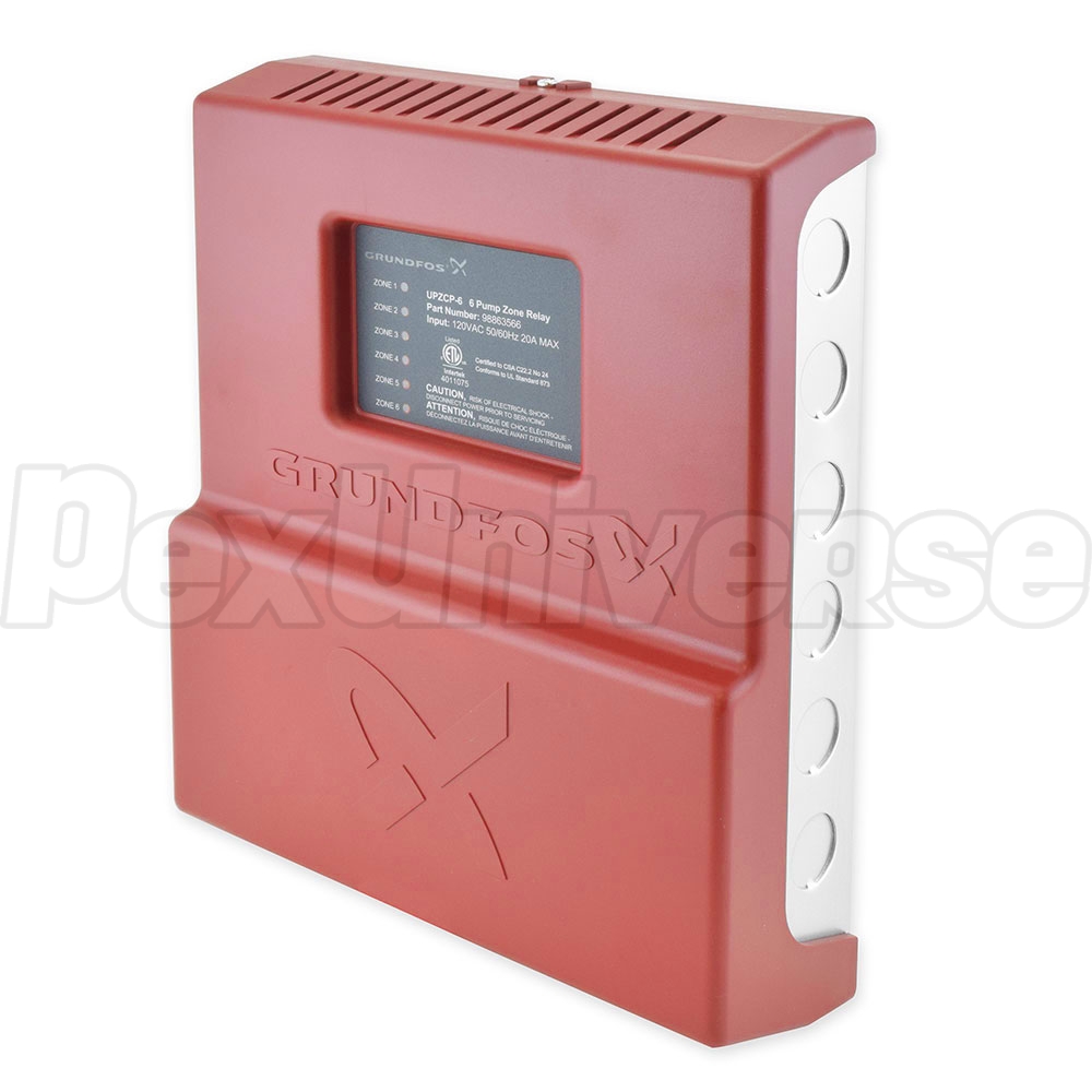 Grundfos UPZCP-6 is six-zone pump control relay for domestic hydronic heating systems. UPZCP-6 relay provides control when zoning with pumps or low voltage zone valves for six zones. Replaces Taco: SR506-4, SR506-EXP-4.