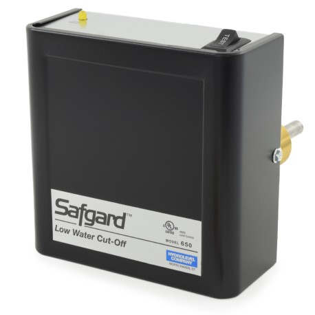 Hydrolevel Safgard 650 is a 120V commercial grade low water cut-off (LWCO) w/ auto reset & test button. Immediately interrupts power in a low water condition, automatically restarts burner when water level is back to normal. Test button checks control for proper operation without lowering the water level in a system.
