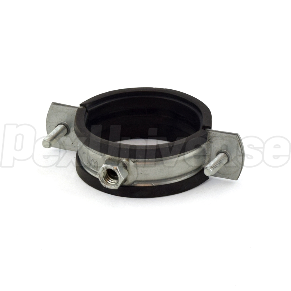 This clamp supports horizontal (every 39") and vertical (every 78") runs of 2" Innoflue Single Wall (SW) vent pipe. Uses 3/8" threaded rod for support. See page 5 of the manual for installation details.