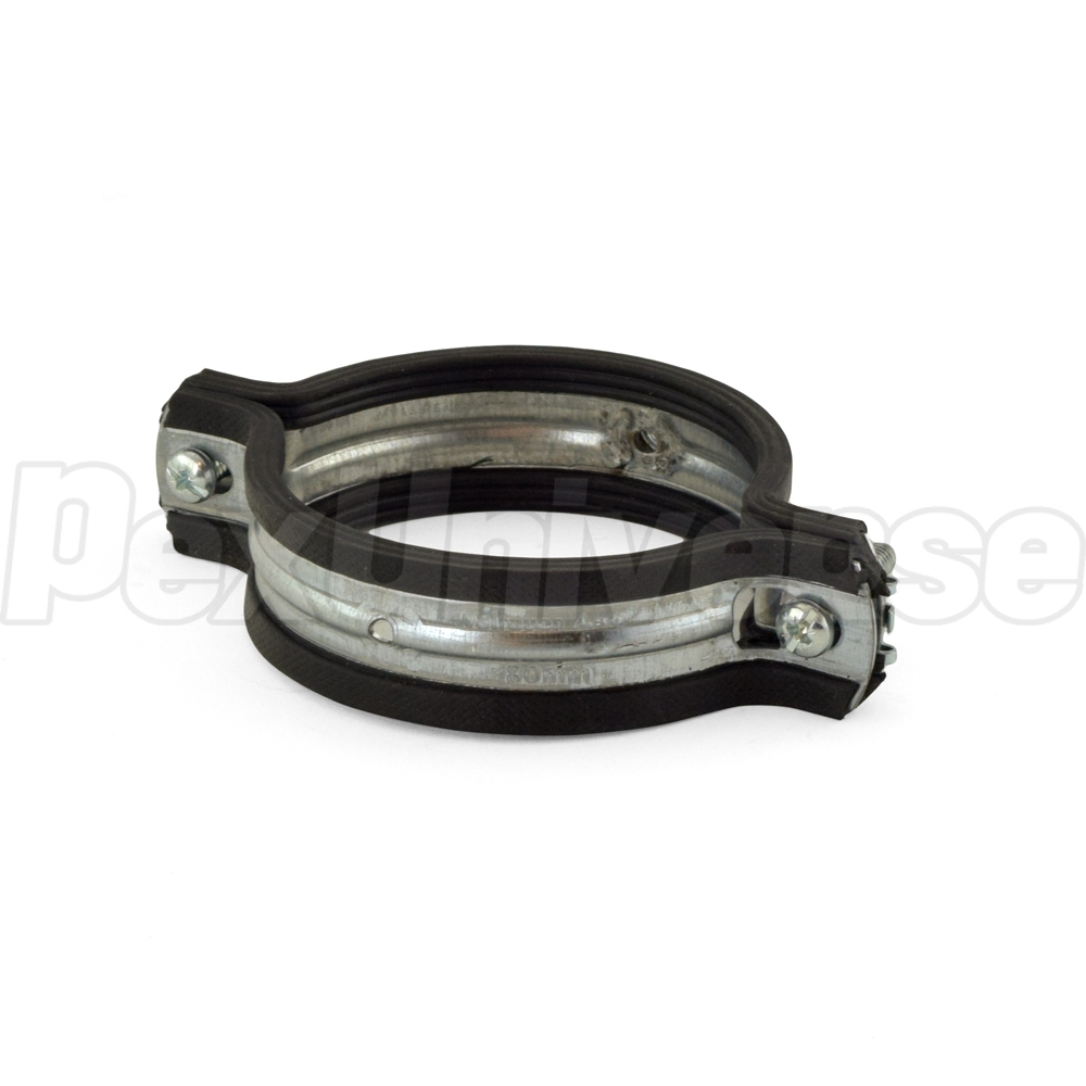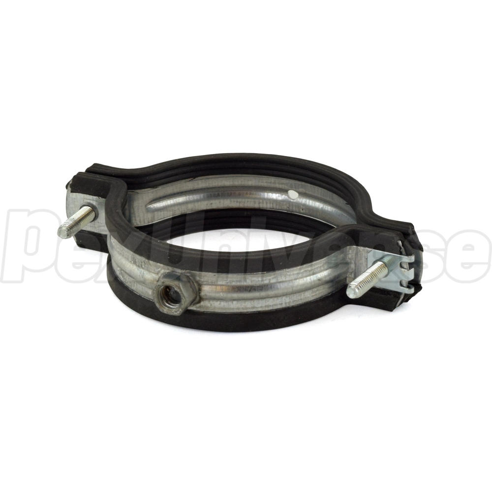 This clamp supports horizontal (every 39") and vertical (every 78") runs of 3" Innoflue Single Wall (SW) vent pipe. Uses 3/8" threaded rod for support. See page 5 of the manual for installation details.