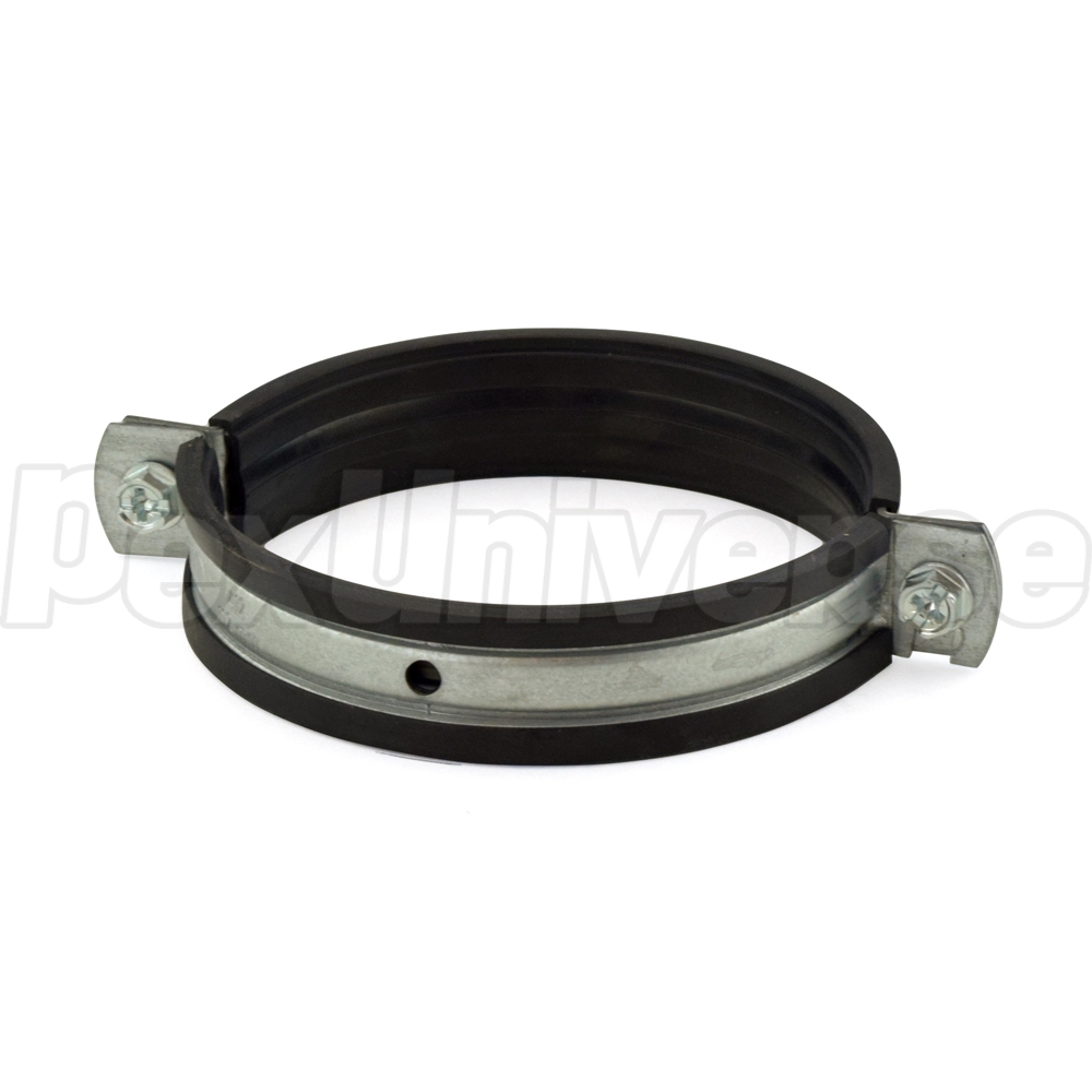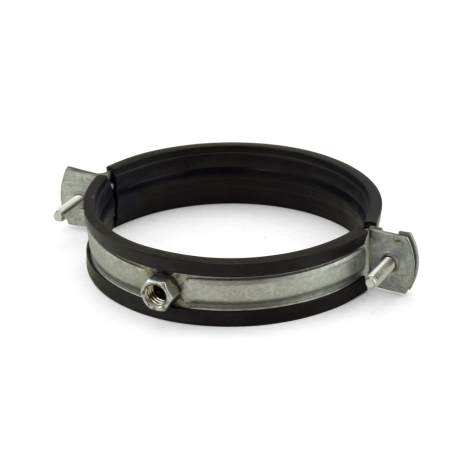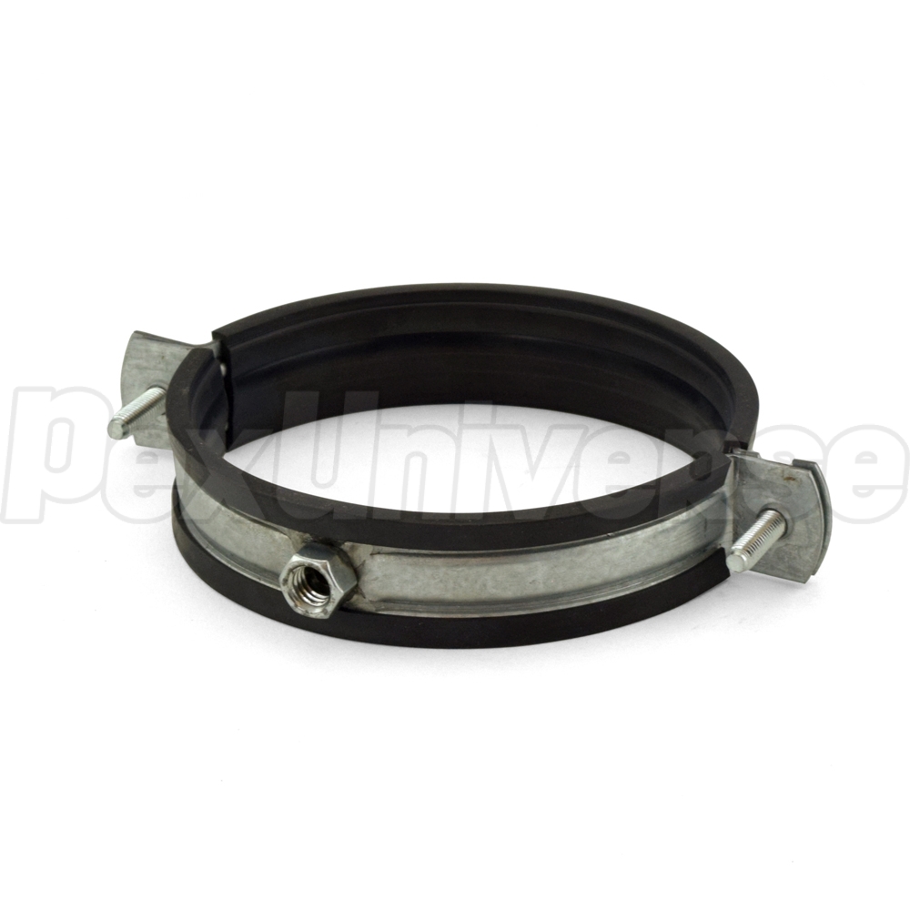 This clamp supports horizontal (every 39") and vertical (every 78") runs of 4" Innoflue Single Wall (SW) vent pipe. Uses 3/8" threaded rod for support. See page 5 of the manual for installation details.