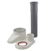This adapter allows to transition from two 3" single wall pipes to 3"/5" Innoflue concentric (male). Both flue exhaust and air intake outlets on the adapter are 3" Innoflue SW (single wall) pipe size (male end connection) - installed in the same manner as the rest of the single wall piping (3" IANS03 connector ring required).