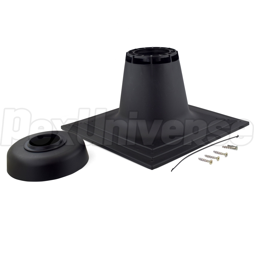 This cover installs on top of a chimney and is used in combination with Innoflue 3" Single Wall (regular or end pipe) or 3" Flex End Pipe Adapter. Incorporates air intake and flue gas exhaust into a single assembly and has a 15.8" x 15.8" square base and is 9.6" high. UV-resistant, black color.
