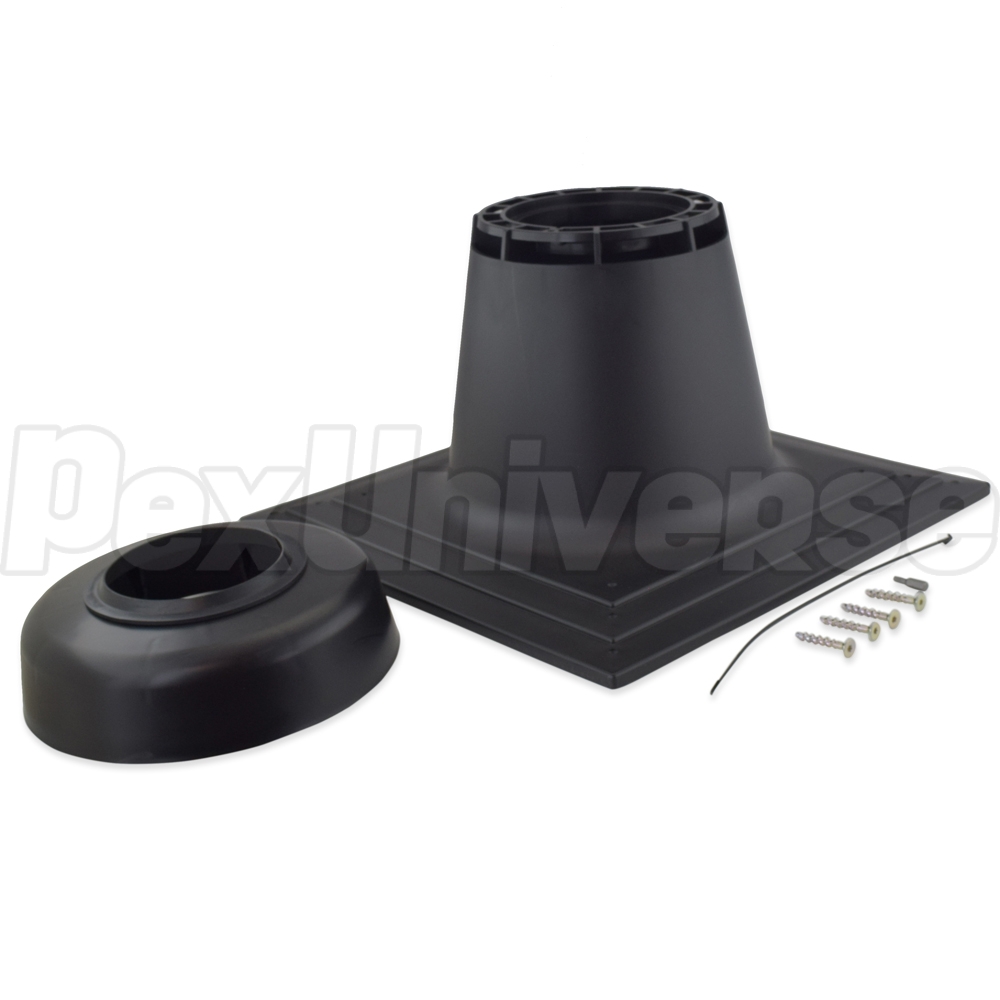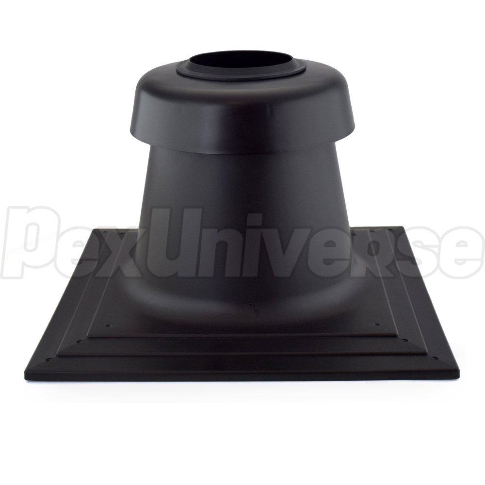 This cover installs on top of a chimney and is used in combination with Innoflue 4" Single Wall (regular or end pipe) or 4" Flex End Pipe Adapter. Incorporates air intake and flue gas exhaust into a single assembly and has a 15.8" x 15.8" square base and is 9.6" high. UV-resistant, black color.