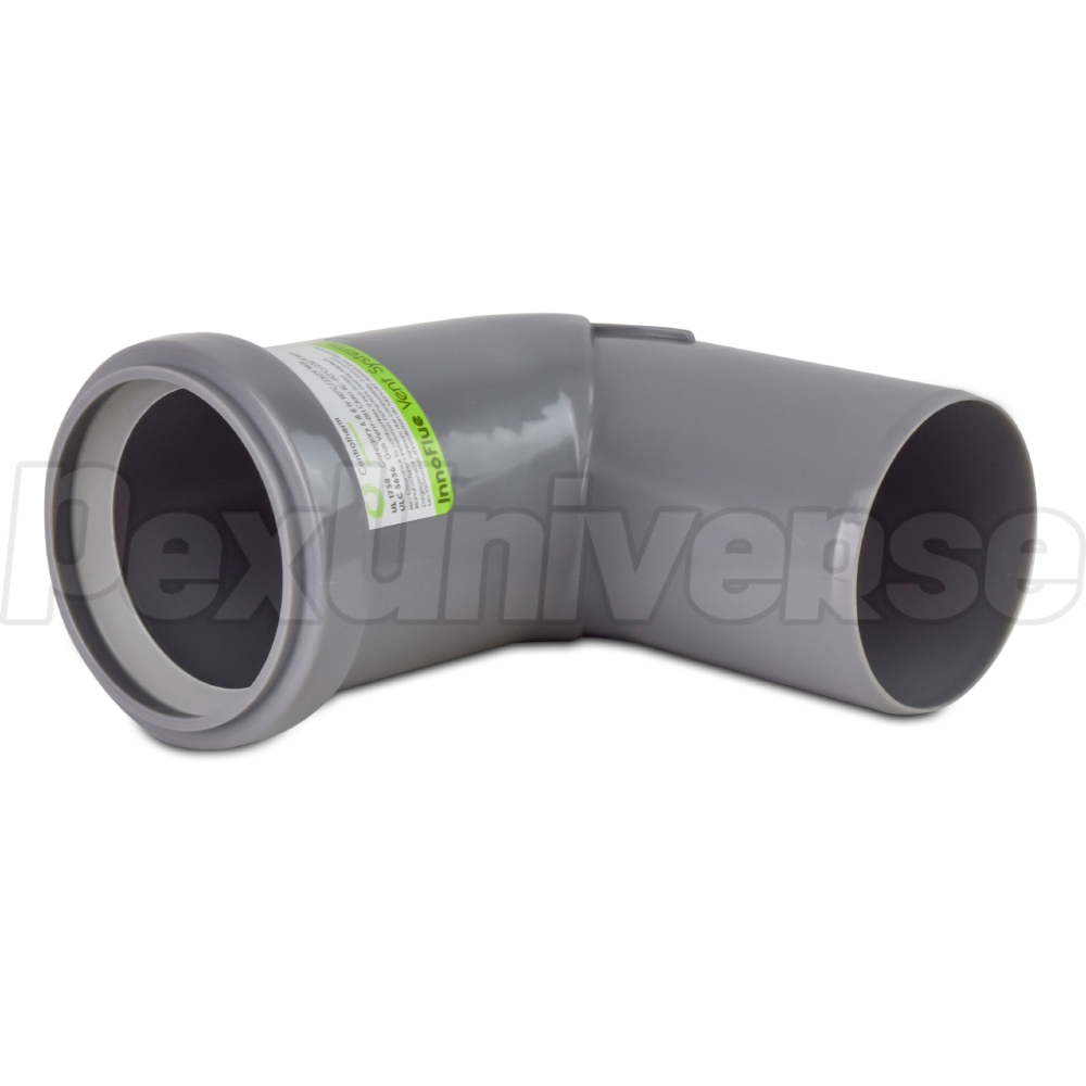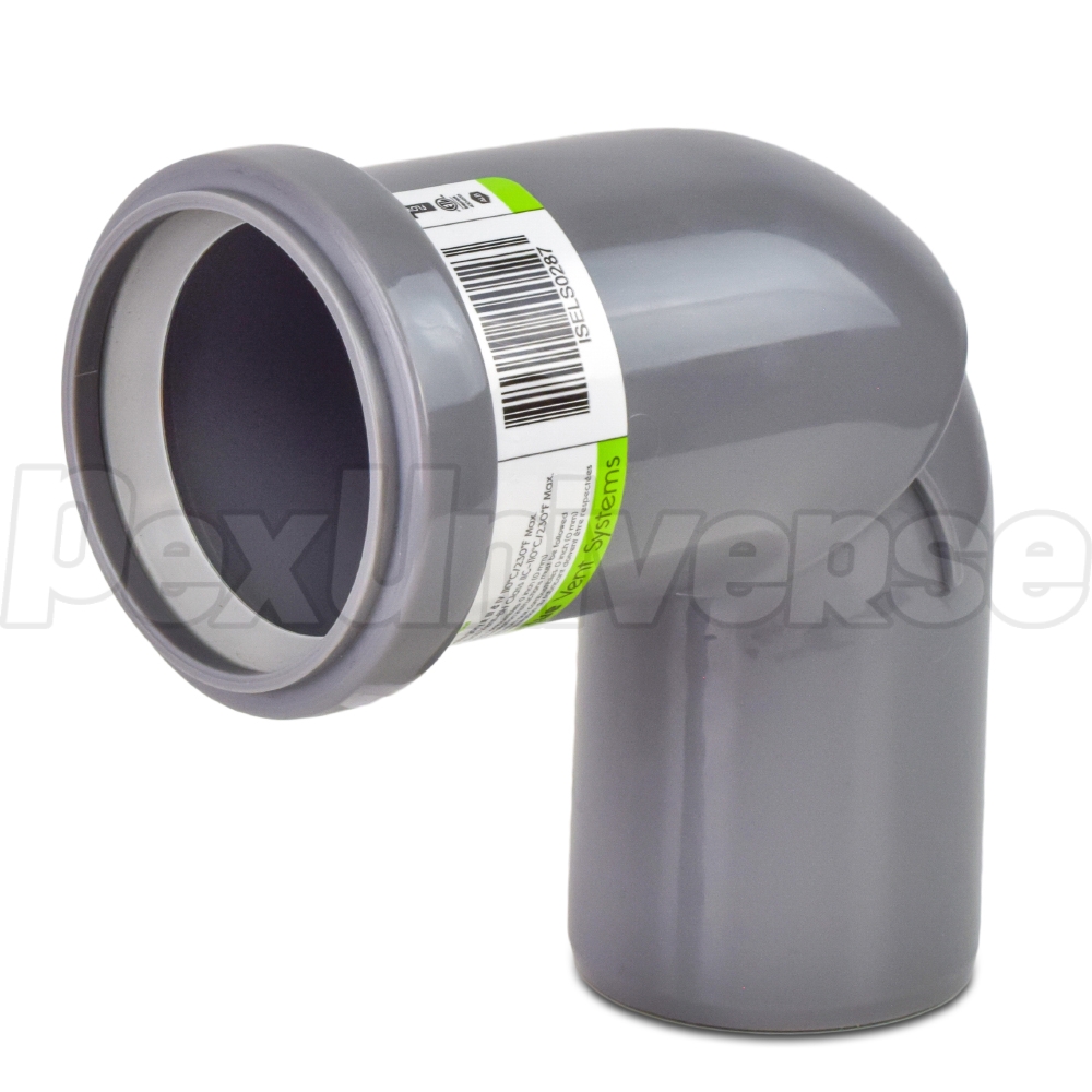 This elbow Zero Radius allows to make a 90-degree turn when installing 2" Innoflue SW (Single Wall) vent pipe and fittings. UV-rated (can be used indoors and outdoors). Note: IANS02 (2") connector ring is required on all 2" Innoflue SW connections and is sold separately. IACE50 Centrocerin lubricant recommended for all gasketed connections.