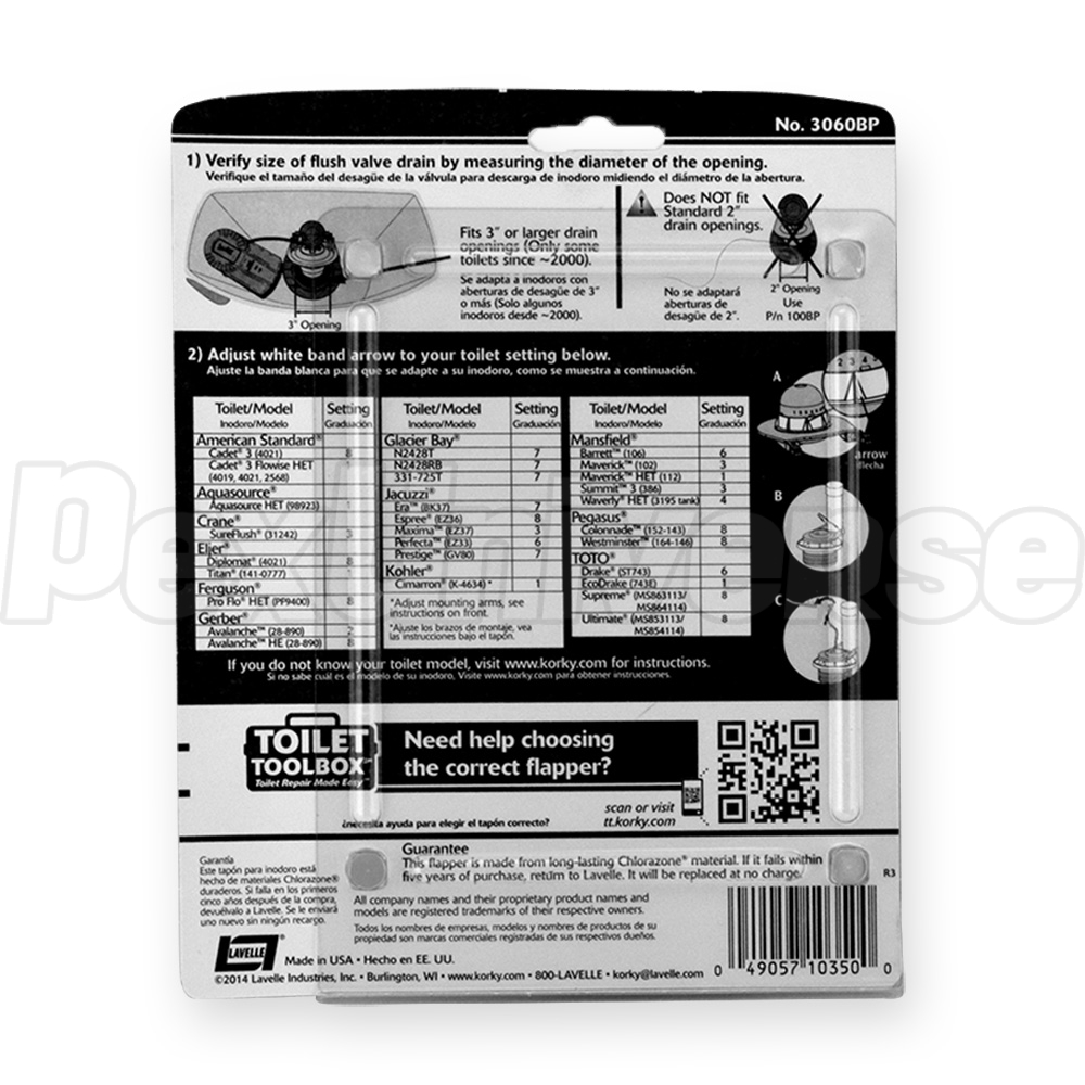 - Fits popular 3" toilet models including: Kohler, TOTO, American Standard, Gerber and Mansfield