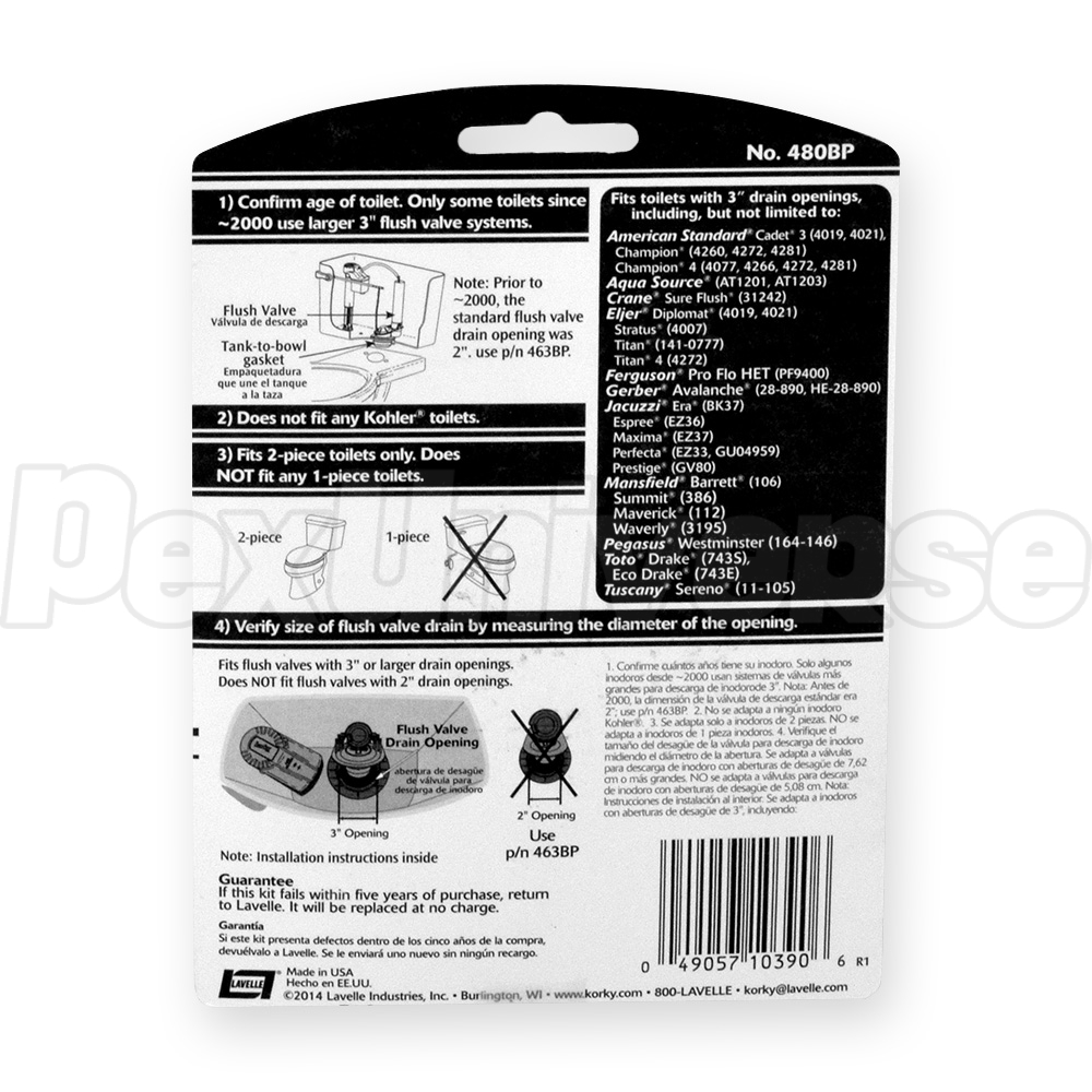 • Fits most 3" two-piece toilets made after 2000, including, but not limited to: American Standard Cadet 3 (4019, 4021), Champion (4260, 4272, 4281), Champion 4 (4077, 4266, 4272, 4281), AquaSource (AT1201, AT 1203), Crane Sure Flush (31242), Eljer Diplomat (4019, 4021), Stratus (4007), Titan (141-0777), Titan 4 (4272), Ferguson Pro Flo HET (PF9400), Gerber Avalanche (28-890, HE-28-890), Jacuzzi Era (BK37), Espree (EZ36), Maxima (EZ37), Perfecta (EZ33, GU04959), Prestige (GV80), Mansfield Barrett (106), Summit (386), Maverick (112), Waverly (3195), Pegasus Westminster (164-146), TOTO Drake (743S), Eco Drake (743E), Tuscany Sereno (11-105)