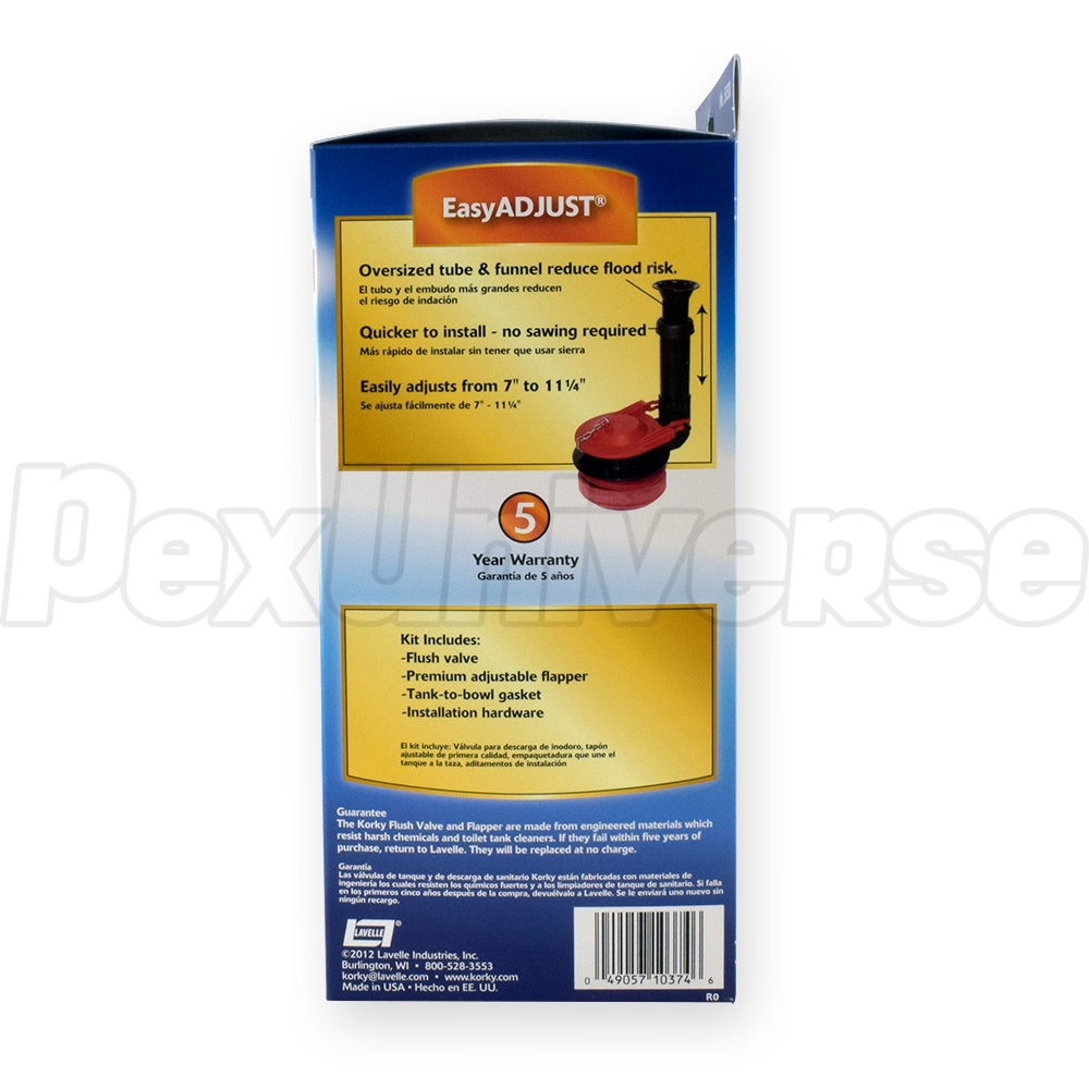 Korky 3" Adjustable Flush Valve Kit w/ Tank-to-Bowl Gasket & Flapper