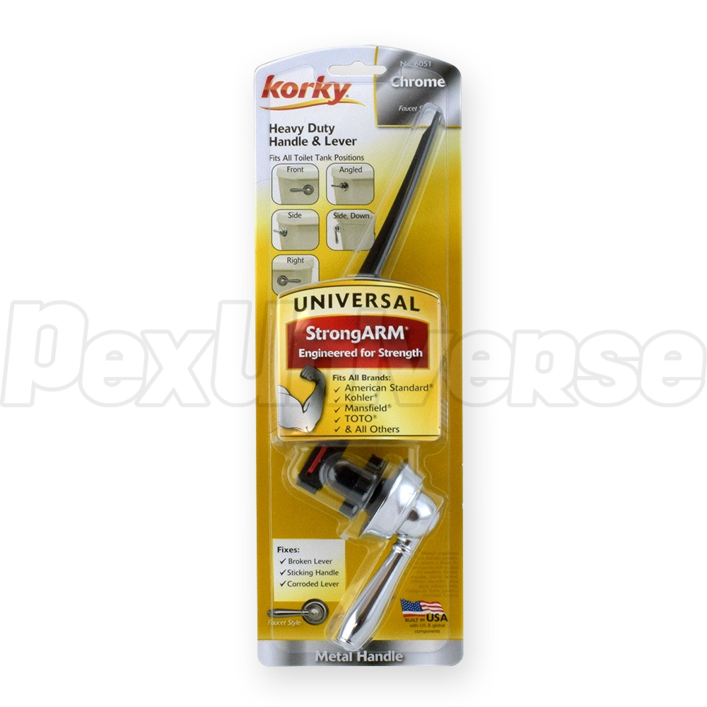 Korky StrongArm Universal Adjustable Toilet Tank Lever, Chrome, Faucet-Style Handle