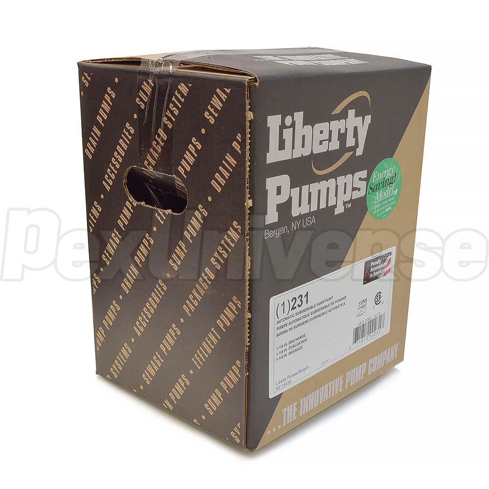 Liberty Pump 231 is 1/3HP Automatic Submersible Sump Pump with quick disconnect wide-angle float switch (mercury-free, integrally wired) and 10ft power cord. This Energy Saving Liberty Pump features deep finned powder coated aluminum motor housing that provides 225% more cooling capacity than cast iron housings. Efficient motor design reduces electrical usage by up to 40%.