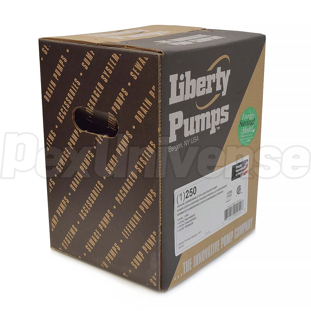 Liberty Pumps 250 is a 1/3HP Manual Submersible Sump/Effluent Pump with 10ft quick-disconnect power cord. This Liberty Pump features a unique one-piece cast iron housing and thermally protected & permanently lubricated motor. Efficient motor design of this Energy Saving Liberty Pump reduces electrical usage by up to 40%.