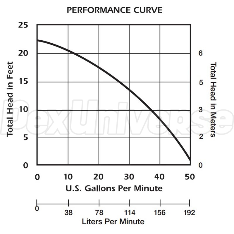 Liberty Pumps 250 has 1-1/2" NPT discharge, 1/2" solids-handling, and 18' shut-off head. It is intended to be run using an approved liquid level control or approved motor control with a correct rating that matches motor input in full load amperes. Regardless of the control type, be sure that when the pump shuts off, at least 3-1/2" of fluid is left in the basin so the impeller remains submerged.