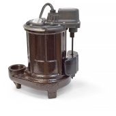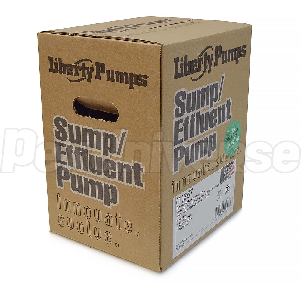 The Liberty Pumps 257 has 1-1/2" NPT discharge, 1/2" solids-handling, 18' shut-off head, a unique one-piece cast iron housing and thermally protected & permanently lubricated motor.