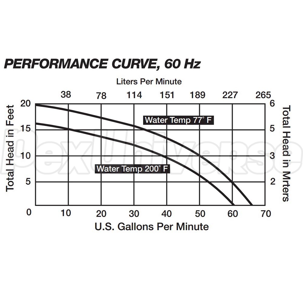 This high temperature, an automatic submersible sump pump can handle solids up 3/4" and has a 1-1/2" FNPT discharge. It has a shut-off head of 16' at 200F water temperature and 20' at 77F. The Liberty HT41A high-temperature sump pumps can a reach a maximum flow of 59 GPM. This Liberty sump pump also has cast iron construction with all stainless and brass fasteners, and a stainless steel rotor shaft that provides ultimate performance and reliability.