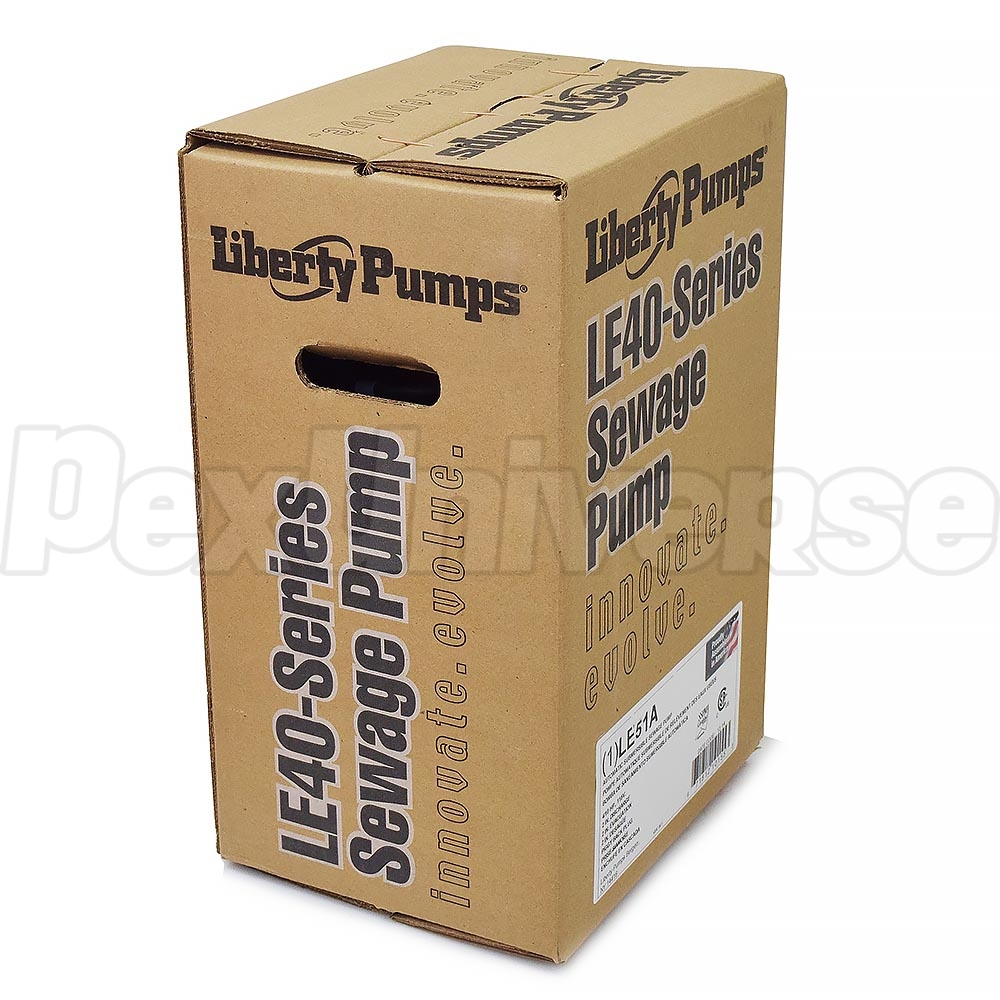 The Liberty Pump LE51A is an automatic submersible sewage pump with a 1/2, 115V motor and a 10' quick-disconnect power cord. This Liberty sewage pump is capable of reaching a max flow of 112GPM at 25' total dynamic head. This sewage pump is also equipped with an adjustable wide-angle switch that has a series (piggyback) plug for manual bypass operation. In the event of switch failure, the submersible sewage pump cord can be separated and plugged into the electrical outlet, directly bypassing the switch. The turn-on level for this submersible sewage pump is approximately 12" to 16" above the bottom of the basin. The turn off level is approximately 6" above the bottom of the basin.