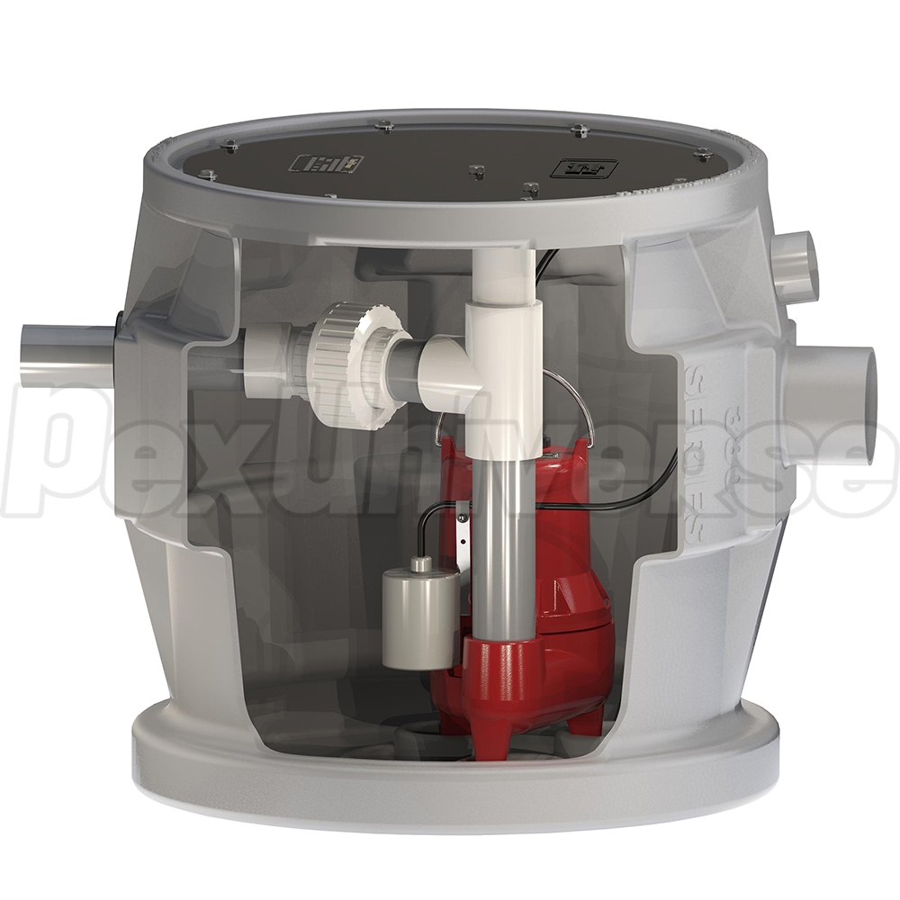 Liberty Pro380-SD series is a variation of the original Pro380 with a side discharge outlet, designed primarily for outdoor installations. This automatic sewage ejector system includes factory-assembled pump and basin combo (with all internal piping) and is ready for installation - simply connect the piping and plug in the pump.