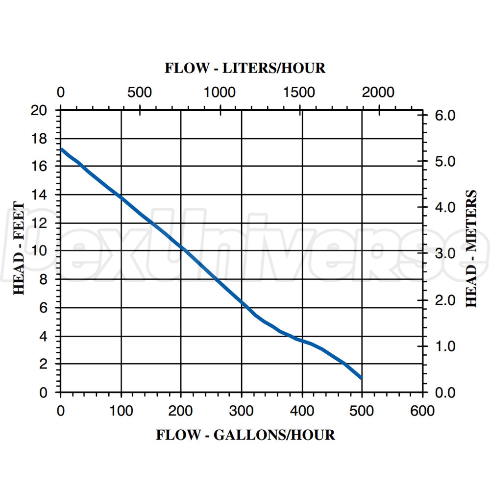 • Max Flow: 500 GPH @ 1' of Head
