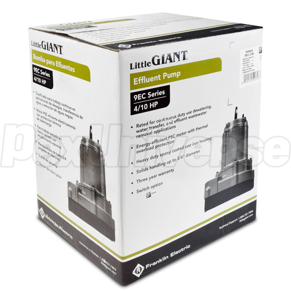 Little Giant 9EC-CIM (509805) is a 4/10HP, Manual, dual-purpose Sump Pump/Effluent Pump with an oil-filled motor (lubricated for life) and a 20ft power cord.
