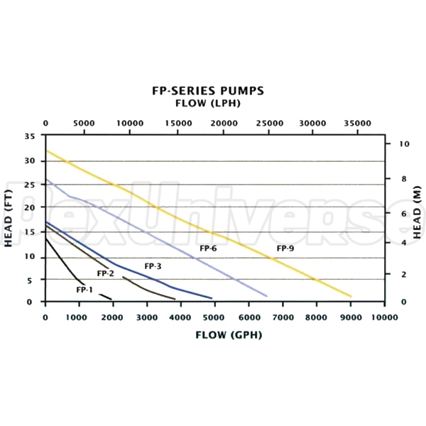 Little Giant FP2 (566133) is a Submersible or out of Pond Flex Pump with 19' power cord, 1-1/2" FNPT inlet/outlet. Ideal for powering water features and pond filtration systems with flows of 2200 GPH @ 5ft of head height.