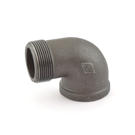 This black malleable iron street elbow connects 1-1/2" pipe to 1-1/2" fitting at a 90-degree angle. Approved for potable water use.