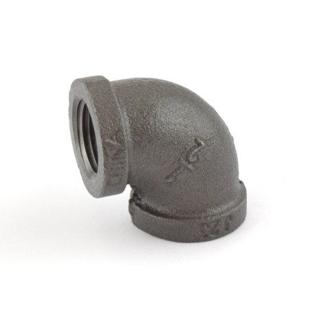 This black malleable iron elbow connects two 1/2" pipes at a 90-degree angle. Approved for potable water use.