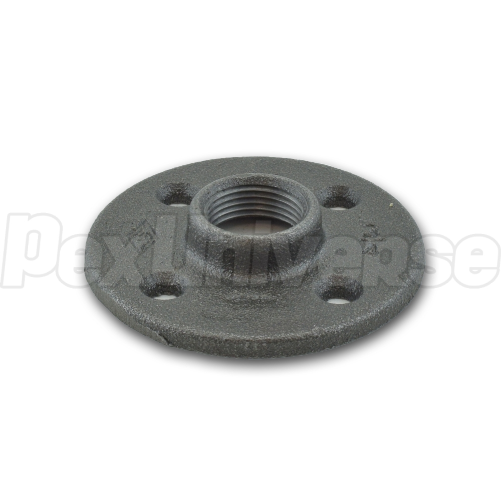 This black malleable floor flange is used to secure 1/2" pipe to floor or wall. Approved for potable water use.