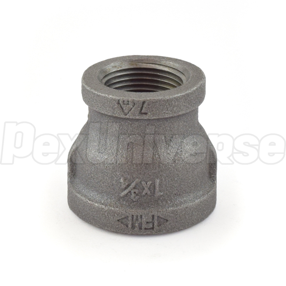 This black malleable iron coupling connects 1" and 3/4" pipes together in a straight line. Approved for potable water use.